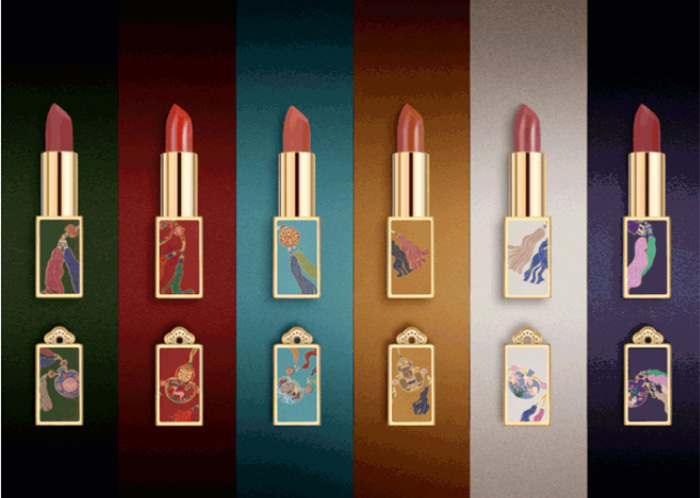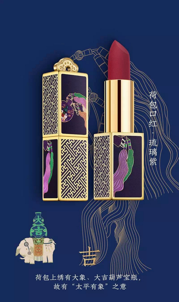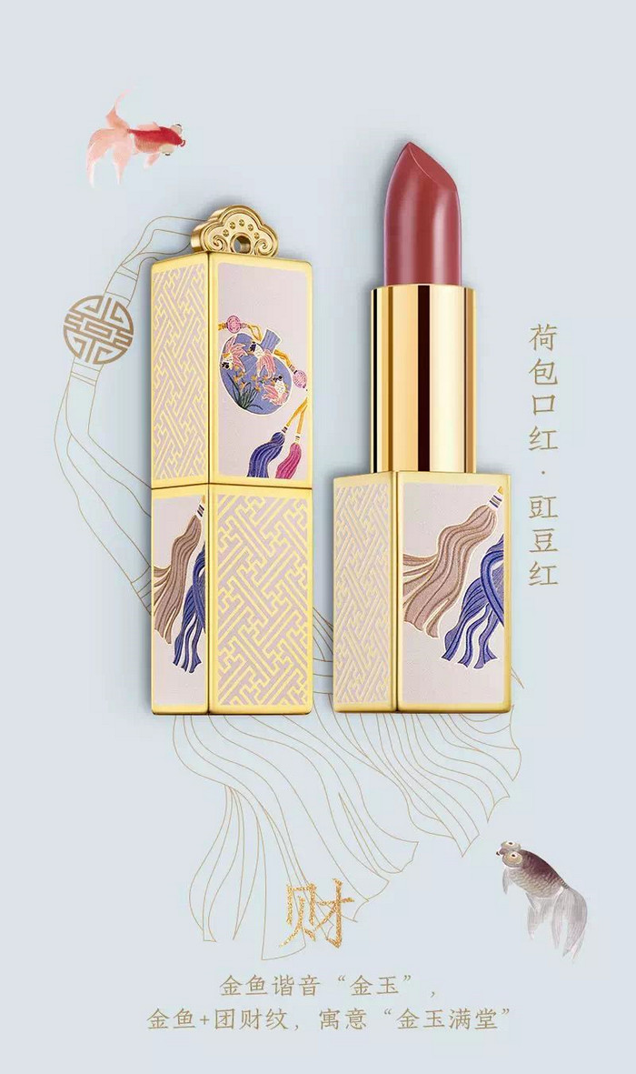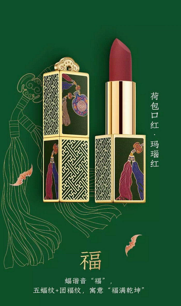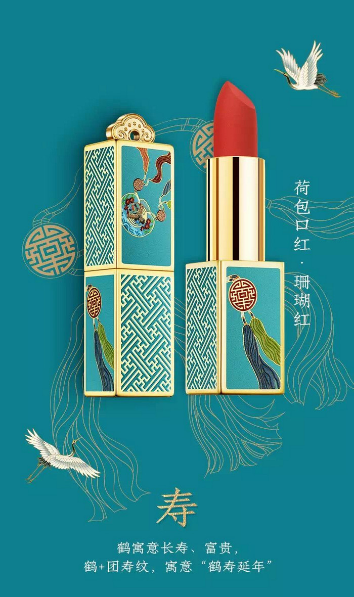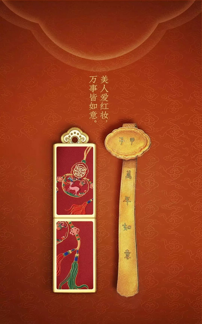 口红管旋转时,荷包纹与万字纹可自由搭配。