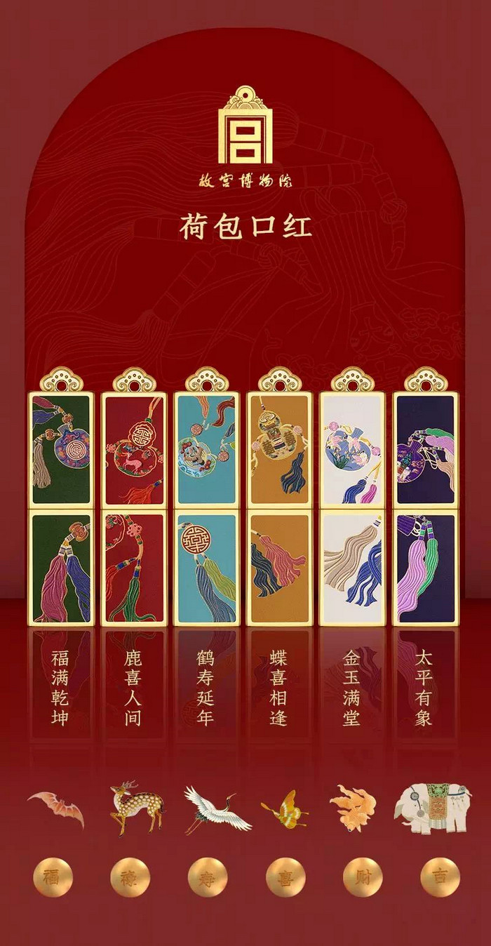 象征“福、禄、寿、喜、财、吉”的美好寓意。