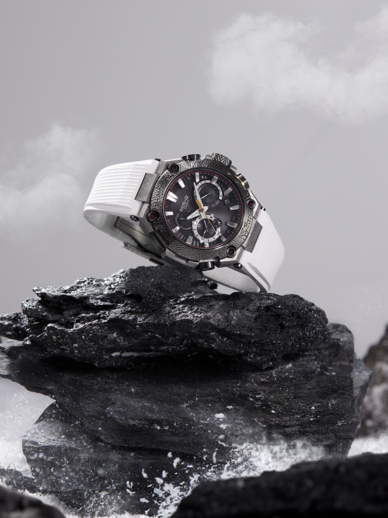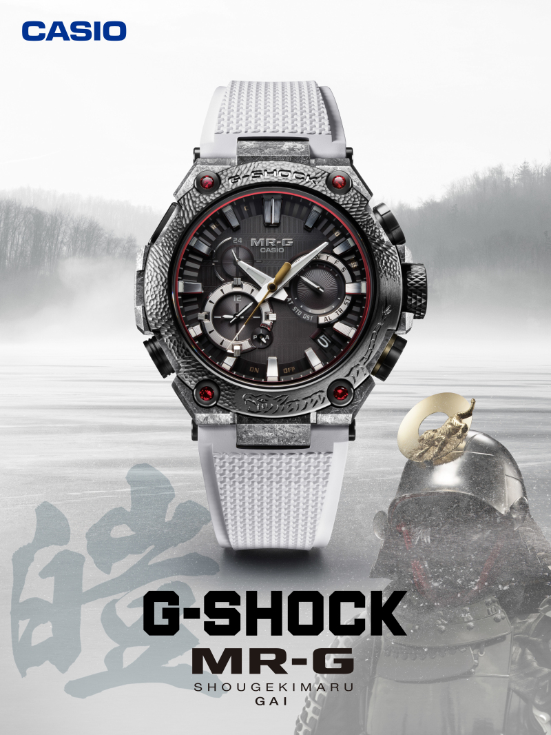 本次,G-SHOCK特邀日本顶级头盔甲胄职人—— 铃甲子雄山,以及国宝级浮雕职人—— 小林正雄,联手打造武士兜盔「冲击丸:皚」,并以此为灵感推出同名腕表「冲击丸:皚」MRG-B2000SG-1A,通过传统工艺传承武将的坚韧精神,匠心呈现MR-G的王者气势!