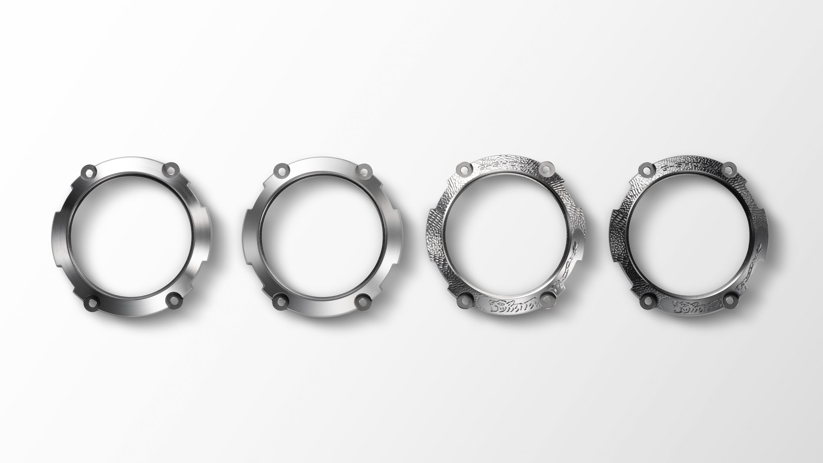 除此之外,腕表表壳还利用再结晶工艺,并且经过深层硬化与深银色电弧离子镀处理,形成金属历经反覆锤打的视觉效果,以此再现武士兜盔的色彩。表盘外缘也有一圈红色饰边以此呼应兜盔的红色绳带。