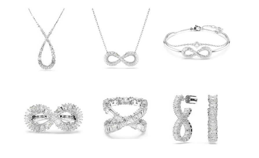 Hyperbola Infinity系列设计融入象征“无尽”的符号,寓意“无限的爱”, 清透夺目的施华洛世奇仿水晶诠释新季摩登灵感,以雕塑般的梦幻曲线刻画出爱的大胆表达。多款精致单品,焕亮日夜场景,亦可情侣搭配。光芒闪烁间,时间的边际悄然融解,只余下浪漫隽永粲然。
