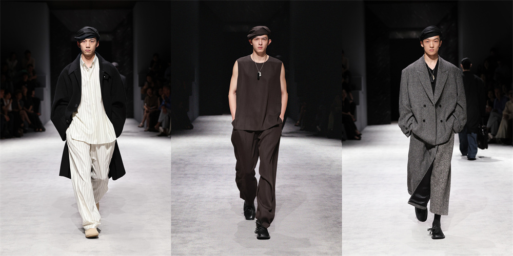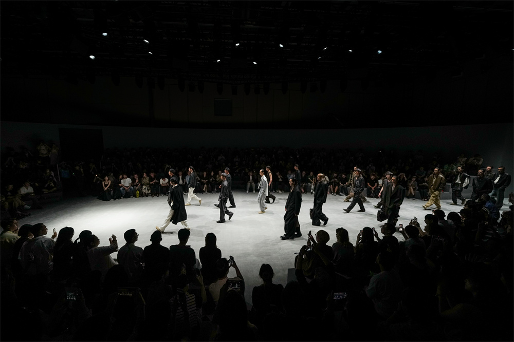 速写秀场以“慢家伙们”的回溯之圆为概念,将90年代的经典男性衣橱以极简手法重新诠释,圆形结构与光影的巧妙运用,映射出丰沛的人生状态。青年歌手、演员陈立农作为特邀嘉宾出席观秀,新生代中国模特陈卓国内首秀惊艳亮相,演员、模特张亮压轴走秀,生动诠释品牌的复古未来主义风格。艺术DNA和“幽默再思考”的主张一直是速写坚定不变的品牌内核,秀场上的创意设计与沉浸式表演,正是其品牌精神的具象化呈现。