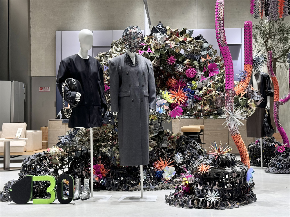 江南布衣携手品物流形设计工作室,通过中国传统工艺与材料解构,以织物组成艺术装置,取名为“Avant GardeN妙境”。该装置灵感源自传统套索结构的复杂叠加,以单一样式的重复与变异,编织出一幅幅似梦非梦的奇异景观。观众漫步其间,仿佛穿梭于传统与未来的交界,让创意在“妙境”中恣意生长。