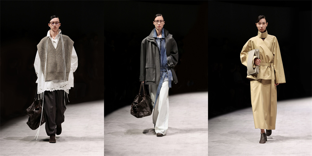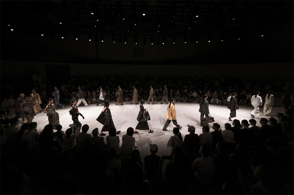 LESS秀场以“光影之间,轮转之圆”为主题,结合LESS品牌对精湛工艺与高级材质的专注,通过布面与光影的艺术诠释,以温暖覆盖象征时间轮回的环形秀场,彰显品牌极简主义的独特美学精神。