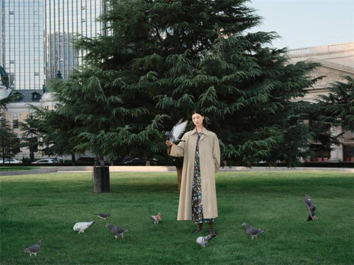 JNBY 秉持新视觉与高品质并行的理念,在细节中的彰显设计张力。廓形风衣采用宽松版型,全棉纱线采用紧密织造工艺制造,造就面料厚实坚实饱满的手感,使整体造型复古又不失现代潮流感。意大利 Liberty 进口超细长绒棉裙装,色彩浓郁而艳丽,独特的工艺让面料上的花朵呈现出超现实的拼贴效果,仿佛置身于奇幻的艺术世界。