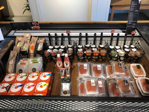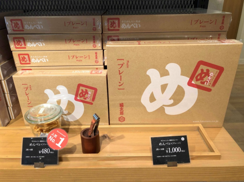 进店之后,店门口陈列了山口油屋福太郎自产的各种食材,新鲜的鳕鱼子、寄卖的知名冷冻食品、当然还有我爱吃的MENBEI仙贝。这家店的MENBEI有通常的5种口味,不过我最爱的还是原味的。