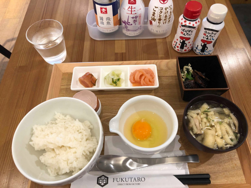 小编饿着肚子从机场赶到FUKUTARO CAFE,当然就是为了他家的午餐和下午茶了,坐在就餐区我们就开始点单了,一份鳕鱼子午餐才需要680日元,也太便宜了吧,小编和闺蜜以为分量很小,但是等饭上来之后发现,分量很足。一人份鳕鱼子饭里包含了味增汤、日本特有的生鸡蛋、米饭和山口油屋福太郎的招牌美食鳕鱼子,还有小碗的日式腌菜。鳕鱼子畅吃,米饭的话可以免费追加一次。真的很划算呢,好吃量又足,没有枉费我们下了飞机就冲过来打卡。