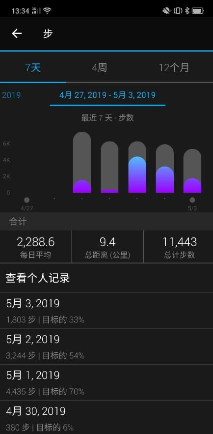 手机App计步数据一周、四周、全年,记录下来以便形成线性显示更加直观