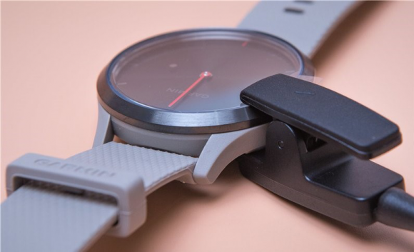 佳明vivomove HR女士时尚腕表所附带的充电夹,充电时夹子用起来很方便也能很好的固定智能腕表,避免脱落。