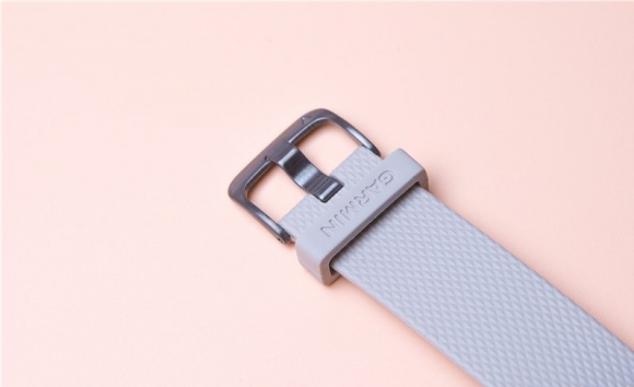 佳明vivomove HR女士时尚腕表表扣颜色与表圈相同,金属材质,硅胶束圈印有品牌英文标识。