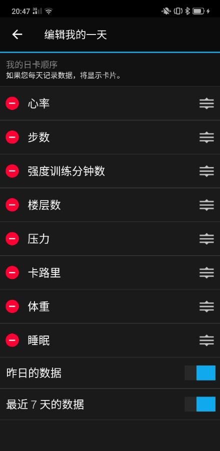 手表App各项均可打开并编辑显示项,如果想设立更多的目标和锻炼指数添加你所喜欢的选项就可以了