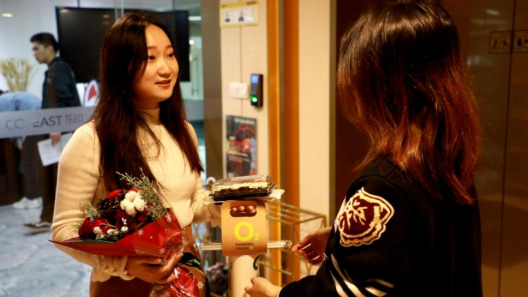 当然,事情并不总是一帆风顺,在为杭州柴妈妈派送惊喜的时候就出现了一点小意外。当天上午11点多,贝小暖团队到达柴妈妈办公室外,电话她谎称是送快递的需要本人签收。可是柴妈妈还在会议上,为了能亲手送上这份惊喜,只能先耐心等待。眼看过了饭点还没有出来,贝小暖团队就下楼为她带了一份午饭。