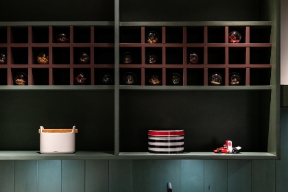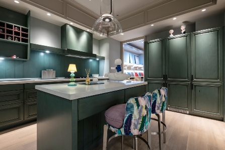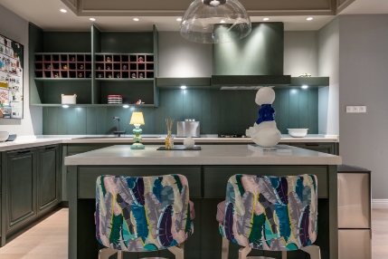 壁柜内不仅可以嵌入厨房各类烹饪式电器如蒸箱、烤箱、咖啡机等,更分门别类规划充足储物空间,配合一旁的吧台型中岛,为美酒爱好者提供完美空间。