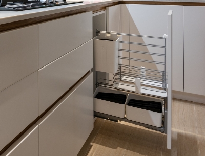 此外,橱柜内还通过系列精巧设计让用户的拿取和储藏更便利。橱柜为锅具打造的专属收纳空间,以旋转式底盘让用户轻松拿取,无需费力翻找;上方吊柜内iMove配件只需下拉把手,即可将上方隔层拉至便于用户取物的高度。