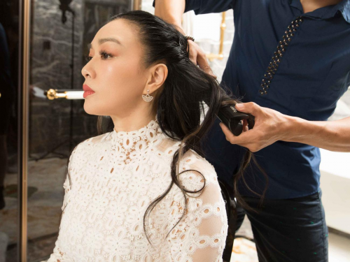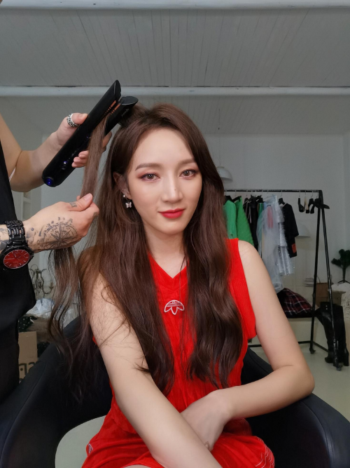 孟佳则呈现出标准女团舞台,拉高实力线,在举手投足间确认无限魅力。使用造型工具正反交替卷发,就能打造出孟佳柔软丰盈的波浪卷发。着重对发顶部分,尤其是发根处进行的提拉造型,不仅完美提升颅顶弧度,增加头发的蓬松感,更添精致魅力。