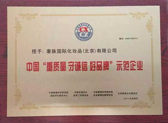 奢脉国际作为民族品牌,坚持做专属于中国女性的高端护肤品品牌,坚守“量肤定制,精准护肤”的品牌理念,以诚信管理理念为指导,坚持诚信服务中国女性,研发生产专为中国女性肌肤定制的护肤品,在业内赢得了良好的口碑。此次盛会上,奢脉国际荣膺中国“重质量 守诚信 好品牌”示范企业荣誉称号,这是社会对奢脉国际的嘉奖,也是对其诚信经营的最好肯定。
