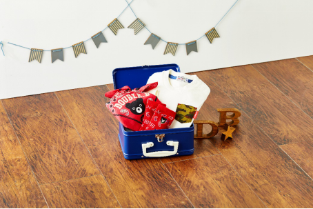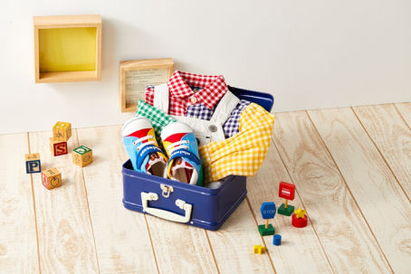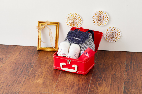把学步鞋、袜子和婴儿背包塞进小巧的红色手提箱里。MIKI HOUSE学步鞋有利于宝宝脚部发育,收到肯定很开心。