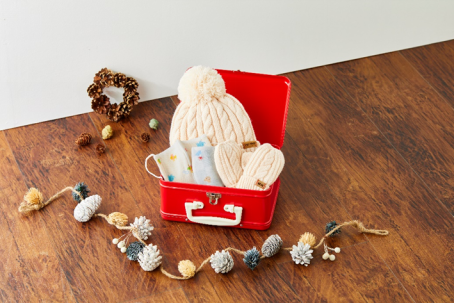 手提箱里有编织帽、手套,以及无论多少件都不嫌多的宝宝纯棉口罩。助力宝宝冬季温暖出行哦。