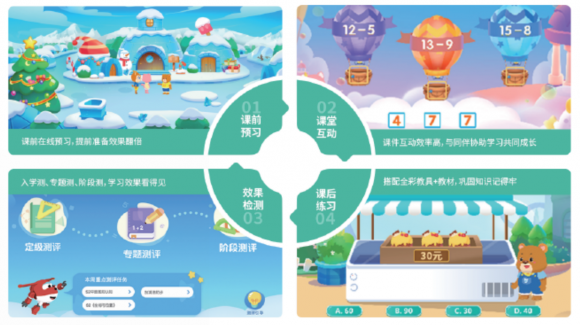 在课堂进行的过程中也十分有趣,不仅有其他年龄相仿的小朋友一起在线互动,还有非常可爱的卡通人物演绎情景动画。老师也会时不时对孩子进行提问,对跟不上进度的孩子循循善诱,每个孩子在课堂的专注度都很高。在下课前老师也会提醒孩子先休息一下眼睛后再进行课后练习,孩子的学习态度就这样慢慢端正起来,学习习惯也一天天的养成下来。