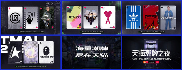 近年来,天猫已越来越成为潮牌们的首选营销阵地,当国际潮牌进入中国市场时,天猫也往往成为最一致的“落脚点”。2020年,天猫潮牌交易额同比增长超过120%,设计师品牌增速同比超过180%。除了EVISU、IT、Aape、Carharrt WIP 等重量级潮牌开出天猫旗舰店之外,Kenzo、 Acne Studio,先锋设计师 Alexander Wang、 Ground Zero 等奢潮品牌也在天猫直达消费者。2021年,日本潮流教父藤原浩、SOPHNET.主理人清永浩文以及visvim的主理人中村世纪共同创办的JUST LIKE HONEYEE,以及OFF-WHITE、NOT SO APE、D-MOP等也纷纷入驻天猫……
