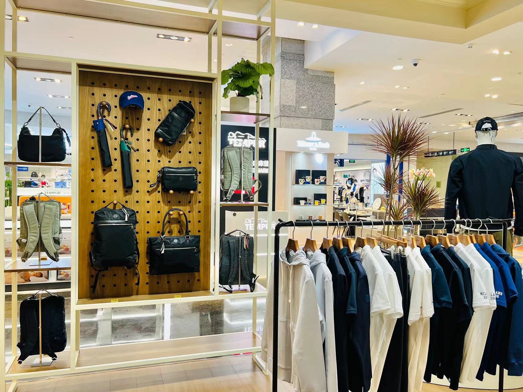 门店中不仅陈列着斜挎包、手提包、双肩包等多功能甄选包袋,还包含T恤、Polo衫、休闲裤等经典品质时装,更有腕表、棒球帽、钥匙扣等亮眼精巧配饰,以凝心匠艺打造至臻型格,满足都市人群日常生活的穿搭和出行需求。