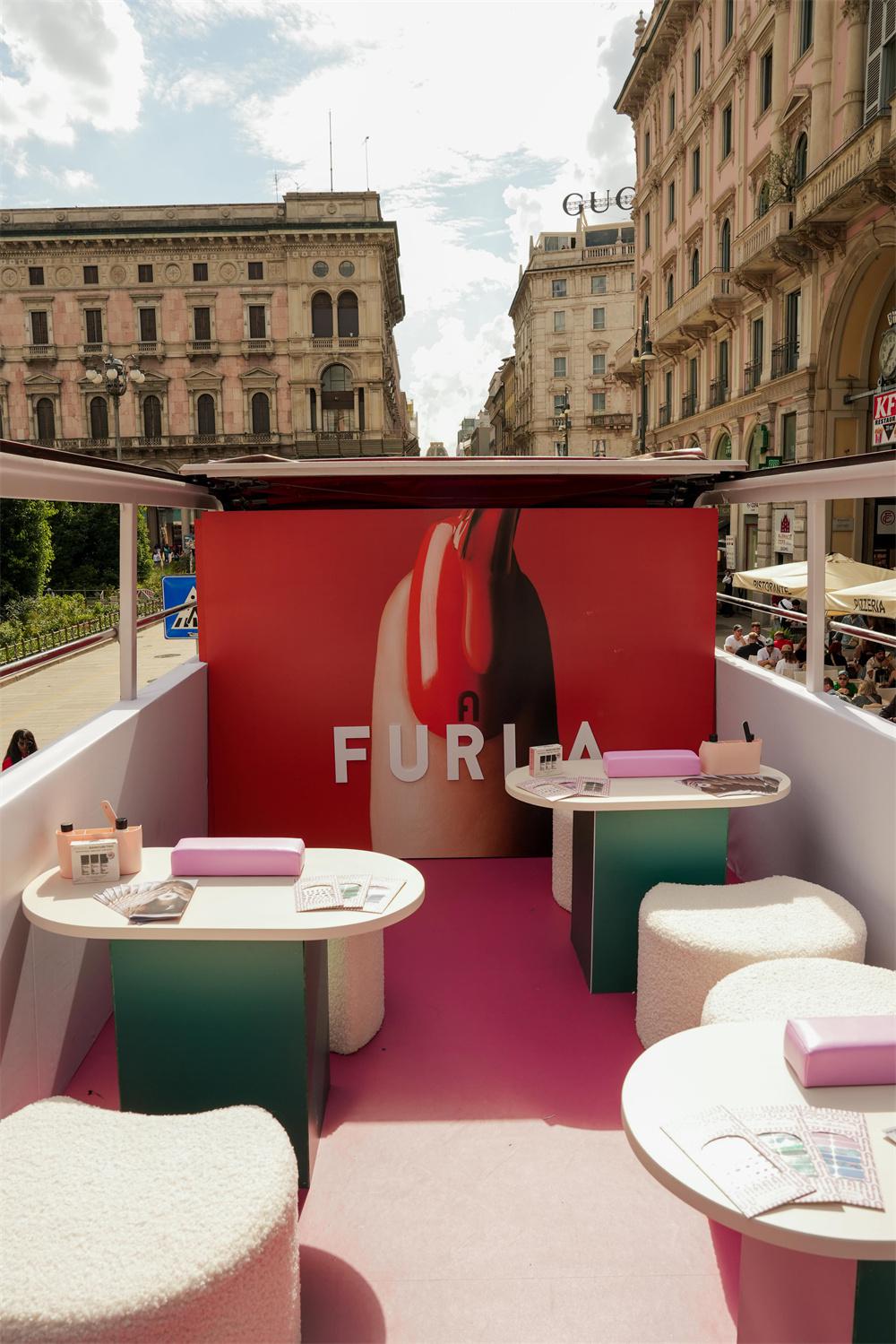 为启动这一大胆的全新方向,FURLA 芙拉将品牌标志性的色彩活力、情感力量和意大利匠心工艺鲜活呈现于米兰街头。9 月 24 日至 25 日的米兰时装周期间,一辆随时上下的经典双层观光巴士将摇身变为移动美甲沙龙,让手袋和指甲油共享同一种视觉语言,打造出趣味十足的沉浸式移动品牌空间。