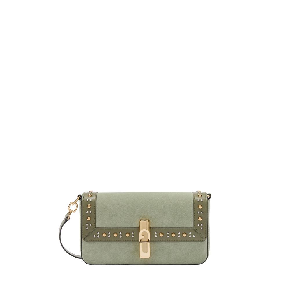 FURLA Iride 饰钉由柔软的麂皮和结构皮革制成,这是硬朗与温柔的结合,又在经典与前卫之间做出了反差。它有一系列丰富的颜色,包括牛仔蓝色、牛油果绿色、亚麻色、深绿色、都市灰色和巧克力色。