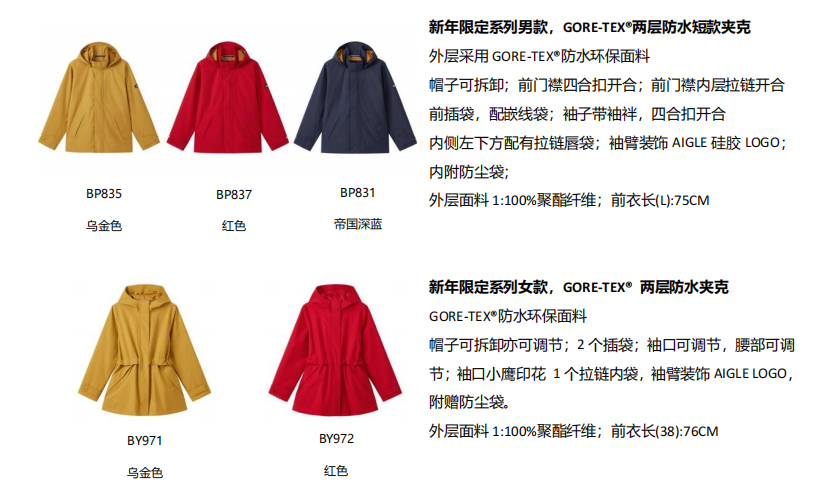 AIGLE艾高马年新年限定系列以三色点亮新年闪耀姿态:炽烈昂扬的新年红、典雅深邃的乌金与温柔明亮的樱草粉,将法式格调与东方节庆精妙调和。专属设计的马年限定徽标,以流线型马首轮廓环抱品牌经典「A」字,凝就“马到成功”的美好寓意。该系列延续AIGLE艾高时尚户外科技基因,运用防风、防泼水、吸湿排汗等功能面料,在不同环境中守护穿着者的舒适与自在,无论山川漫步或都市穿行,皆以从容之姿开启旅程。与此同时,AIGLE艾高将可持续理念融入品牌实践的每一步,全系列均采用环保面料制成,让节日新装亦承载对自然的敬意,传递与万物共生的新年愿景。