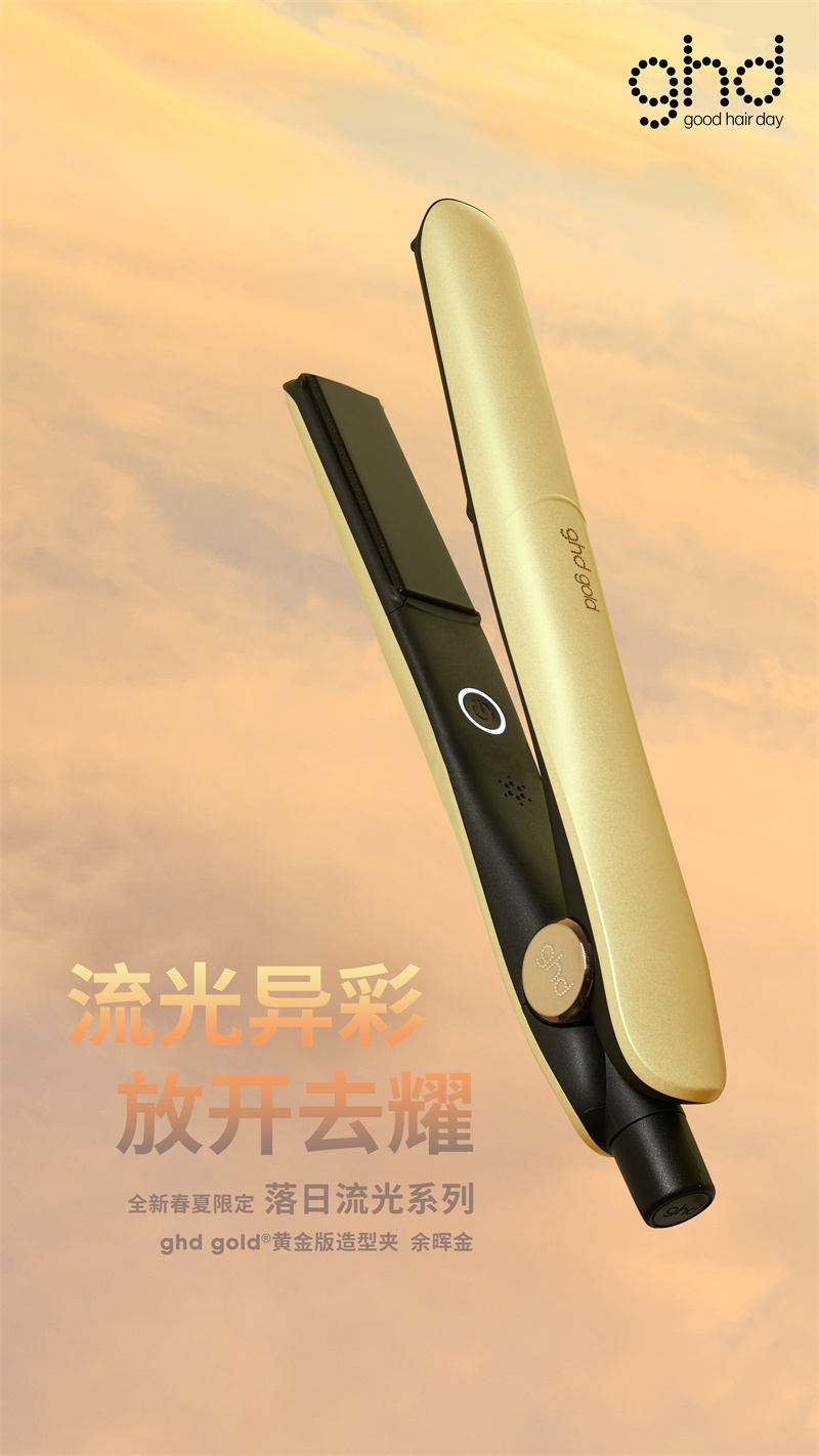 ghd 2023全新春夏限定落日流光系列将于3月26日在中国ghd天猫官方商城正式上市,呼吁更多年轻潮流群体在春夏美好时光与ghd一起流光溢彩、放开去耀,自由探索时尚潮流造型,秀出Z世代的阳光活力与无畏个性。