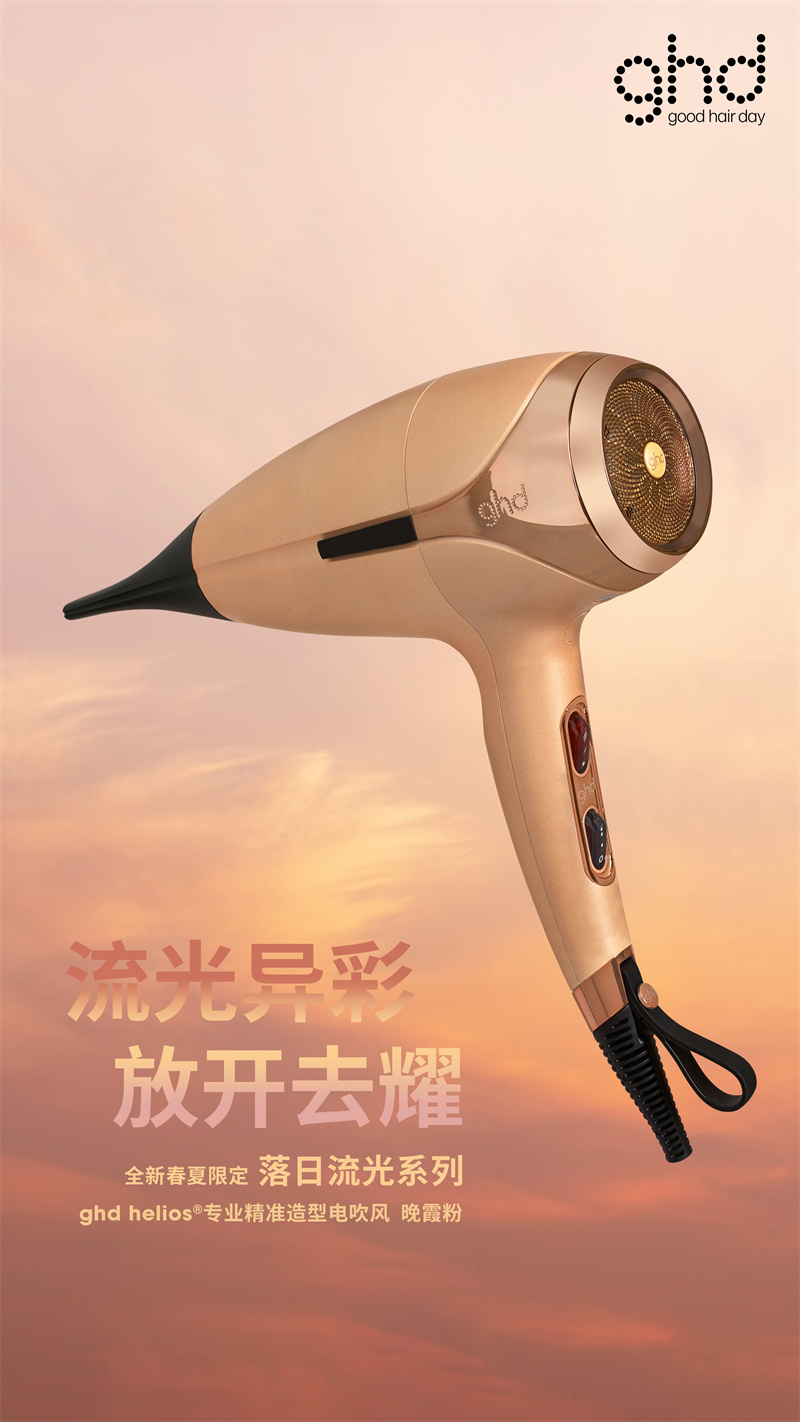 ghd作为全球专业奢华造型工具的领军者,以多项开创性的前沿科技:185ºC3理想造型温度4,ULTRA-ZONE多区感应智能侦测技术等备受专业美发界的认可。ghd旗下美发造型工具在全球50,000多家高端沙龙销售,深受诸多专业造型师的推崇与喜爱,在全球范围内的美发造型领域树立标志性地位,并且迄今为止共累计斩获 400 余项美容大奖。今年春夏,ghd再度发力,捕捉落日灵感色彩,给Z世代年轻群体来更多全新配色产品。